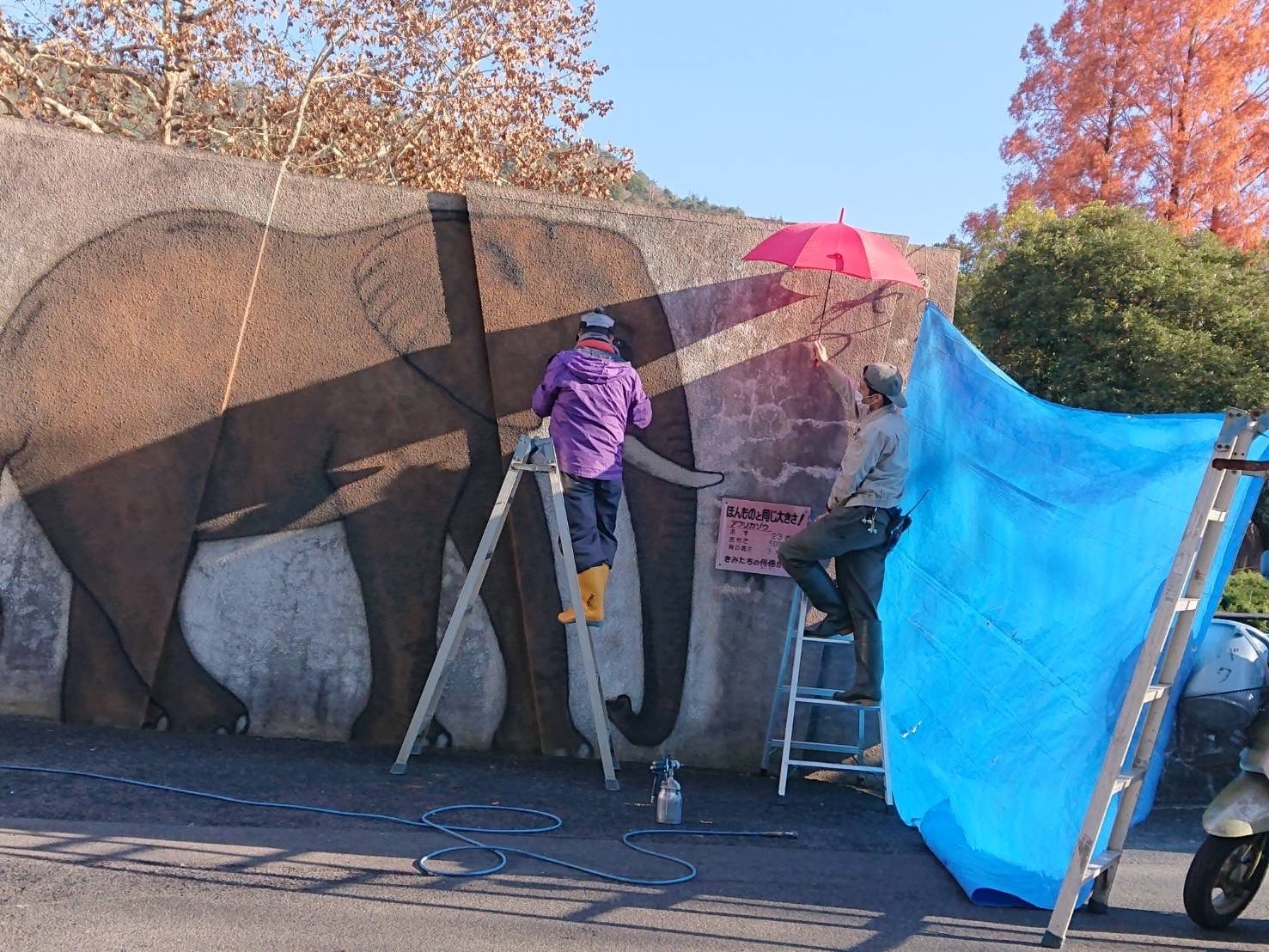 2021/12/08ゾウの壁画が修復されました!!!