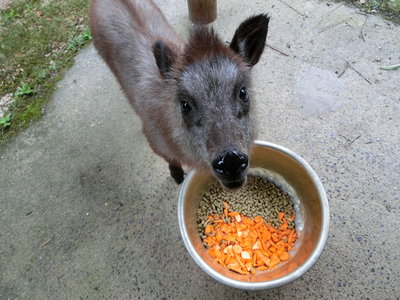 安佐動物公園では、ニンジンやサツマイモ、草食動物用ペレット(人工飼料)そして木の葉を与えています。