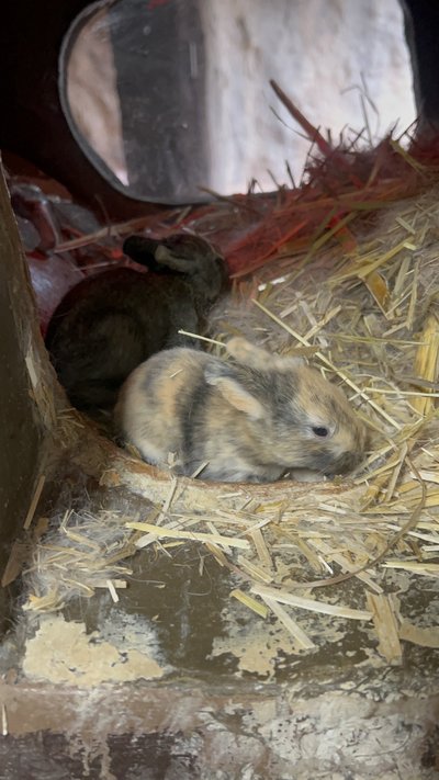 カイウサギの妊娠期間は約1か月で、出産が近づくと自分の体の毛をむしって巣作りをします。